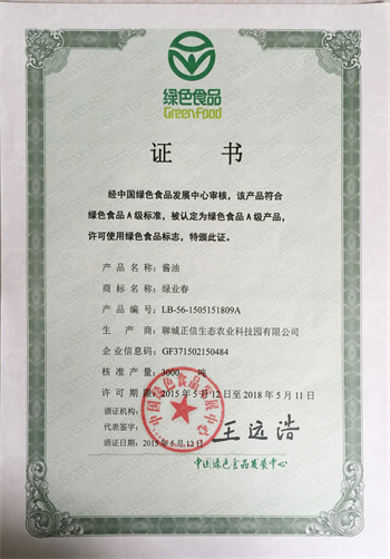 5月26日,正信生態農業科技園“綠業春”醬油、食醋被中國綠色食品發展中心認定為綠色食品“A級”產品,并許可使用綠色食品標志。